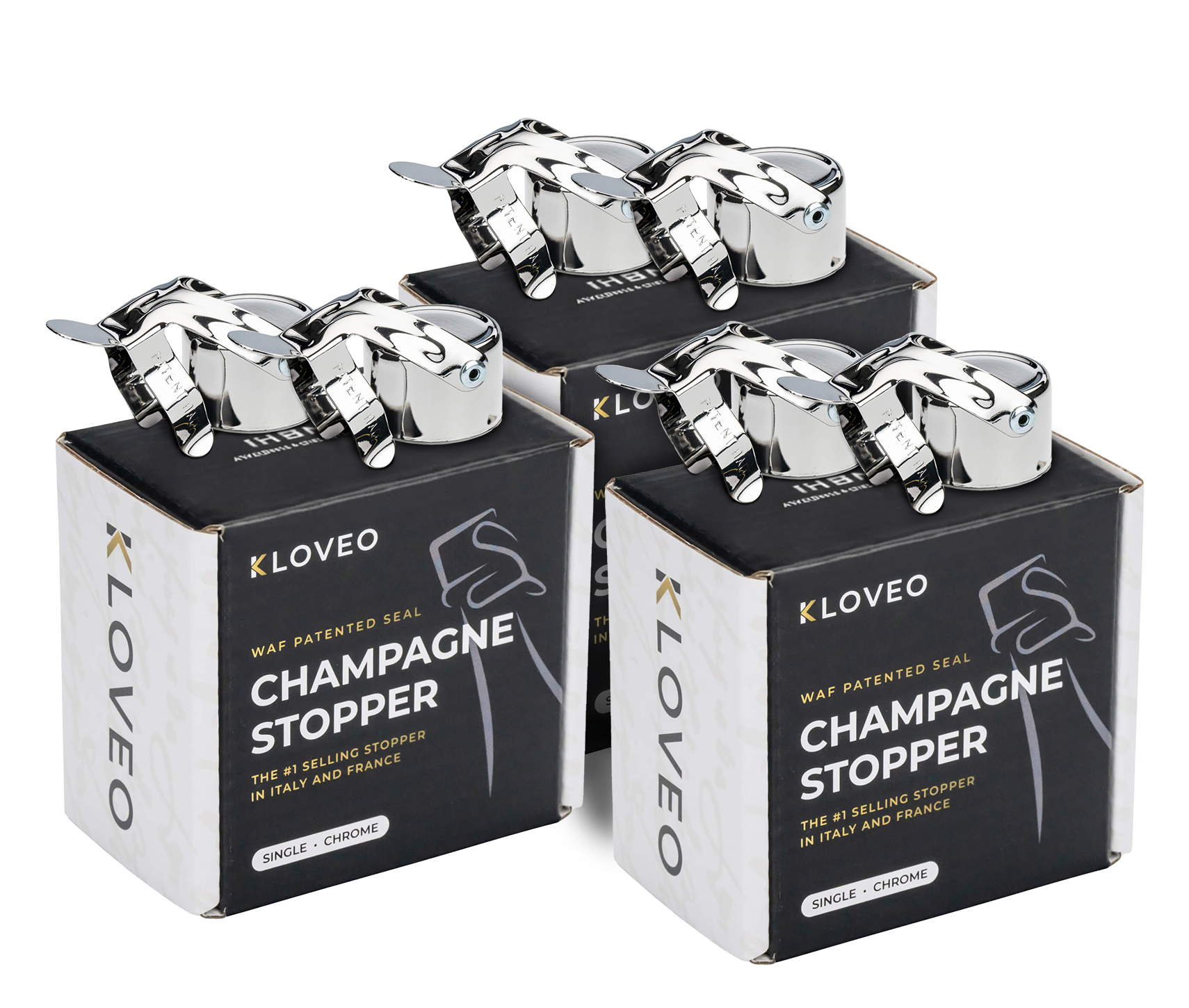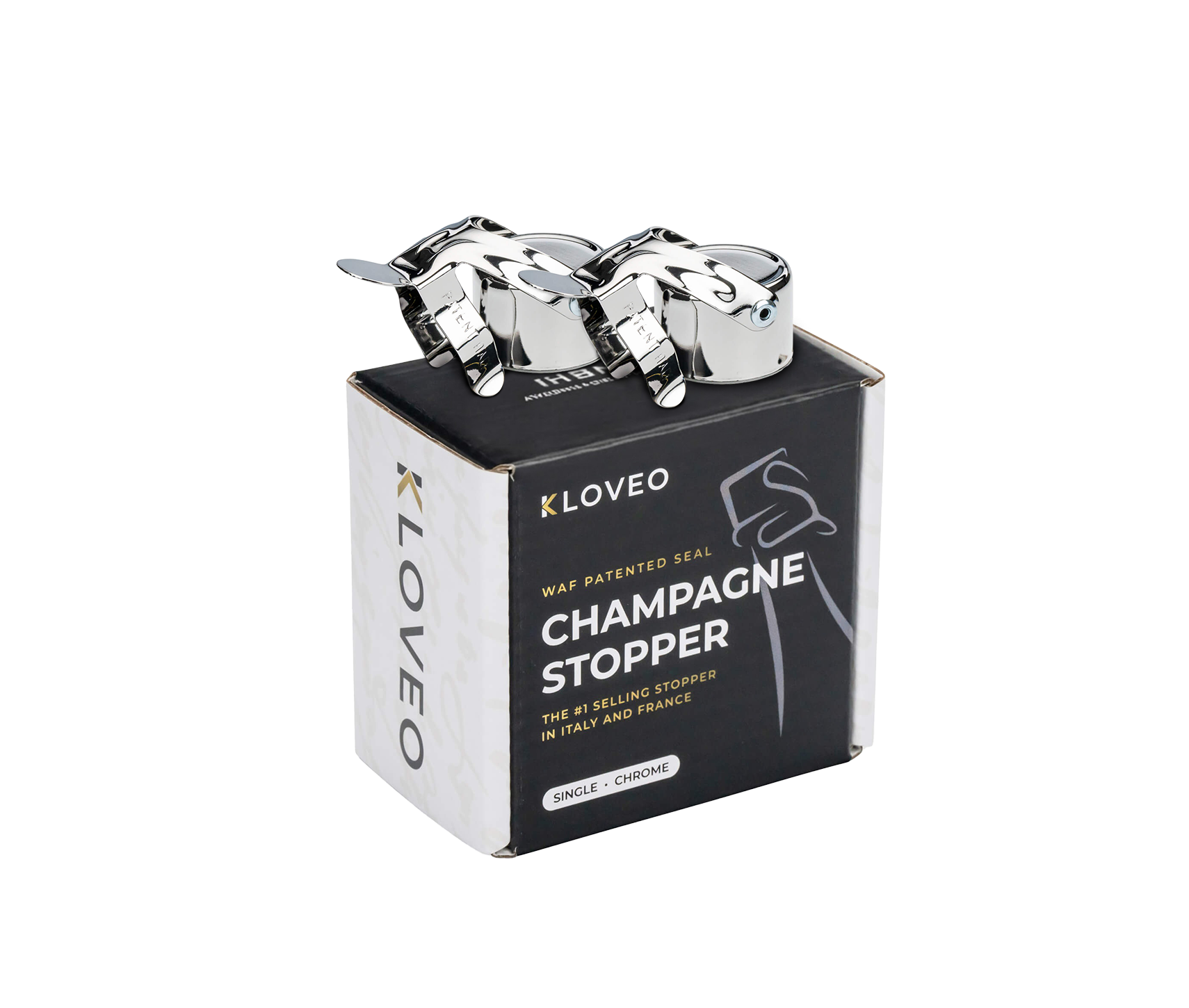 The Kloveo Champagne Stopper is a patented, professional-grade, Italian-manufactured bottle stopper designed to preserve the fizz and flavor of your champagne and sparkling wine for up to 7 days.